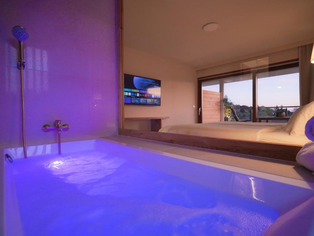 This is Villa Lojena’s crown jewel for couples. Apartment 7 combines a breathtaking sea and pool view with an indoor Jacuzzi whirlpool bath overlooking the landscape, a truly luxurious spa experience without ever leaving your room.