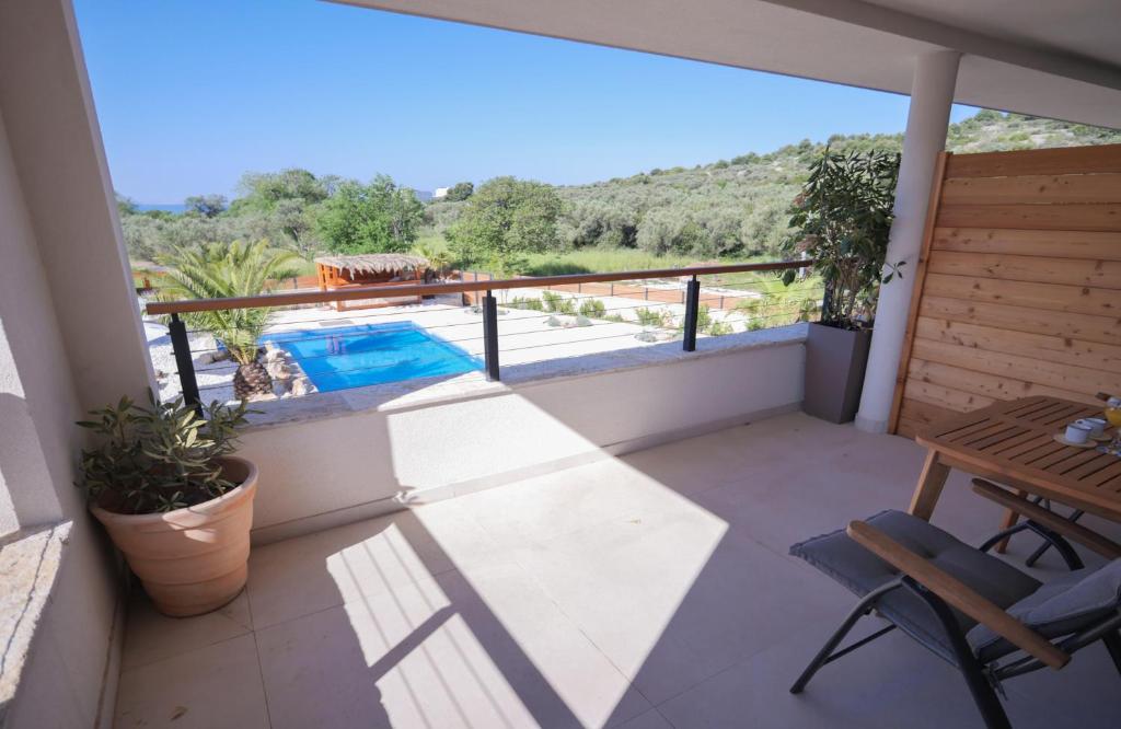 Experience a ground-floor escape designed for those who value space and serenity. This stylish studio boasts an expansive 40 m² terrace, offering a seamless transition from the chic interior to the natural beauty of our centuries-old olive garden. Immerse yourself in the bubbles of your private 2×2 m terrace Jacuzzi—the perfect antidote to a day in the sun.